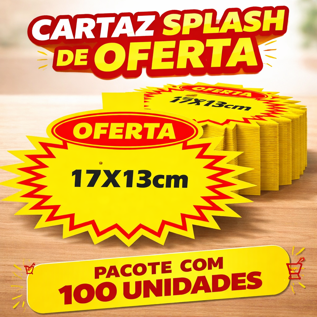 Cartaz SPLASH Oferta - Destaque seus produtos. Ideal para Supermercados, Lojas, quitandas, açougue, farmácia... Surpreenda seus clientes com ofertas incríveis!